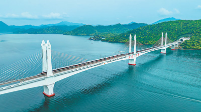 圖為4月26日,復(fù)興號(hào)智能動(dòng)車組列車駛過池黃高鐵太平湖特大橋。王 磊攝(人民視覺)