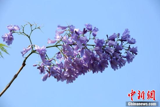 近日,廣西南寧市藍花楹盛開,藍紫色的花朵在風中搖曳生姿。