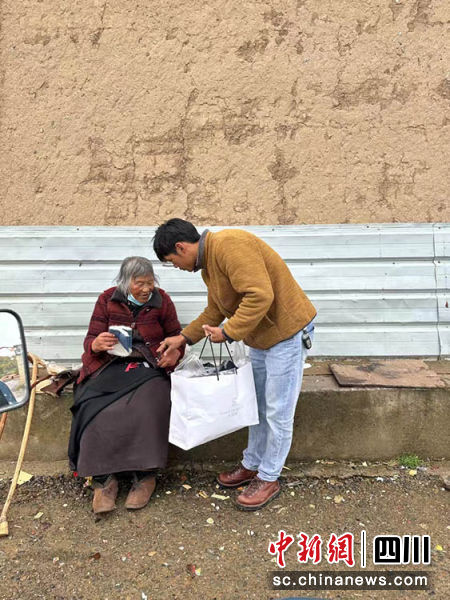 扎西奪爾登為困難群眾送去冬季御寒物資。阿壩州文明辦供圖