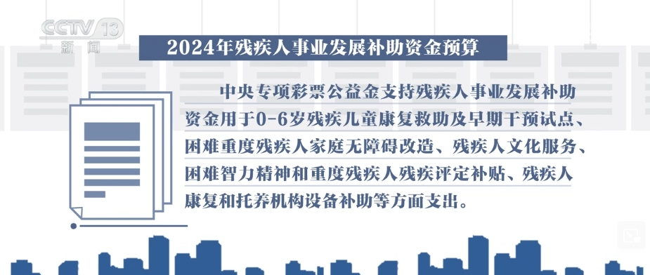 財(cái)政部4月26日下達(dá)了2024年殘疾人事業(yè)發(fā)展補(bǔ)助資金預(yù)算,包括,一般公共預(yù)算資金和中央專項(xiàng)彩票公益金支持殘疾人事業(yè)發(fā)展補(bǔ)助資金。