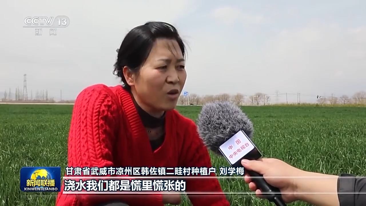 甘肅省武威市涼州區(qū)韓佐鎮(zhèn)二畦村種植戶 劉學(xué)梅:往年這個(gè)時(shí)間,澆水我們都是慌里慌張的。又怕澆不上水,又怕水輪次過掉了?,F(xiàn)在用水有了保障,看到地里綠油油的麥田,心里既踏實(shí)又高興。