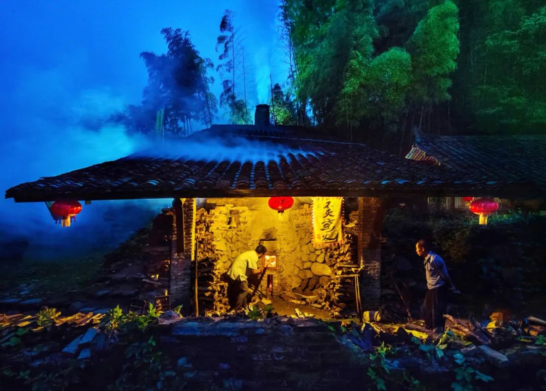 2024年4月11日,下午1點,浙江省龍泉市寶溪鄉(xiāng)溪頭村,依山脈而建的龍窯,窯頭在山腳,窯尾順著山勢向上,像一條真龍匍匐于山脊。裝坯滿窯,吉時已到,窯主葉晨曦彎下腰來,將火送進窯口。泥土石塊,與熾熱的窯火相碰,以期化身晶瑩如玉的青瓷。一年一度的春燒點火開啟,百年古龍窯再次點燃,不滅的窯火,像燦爛的星河,在龍泉這片土地上緩緩流淌、生生不息。
