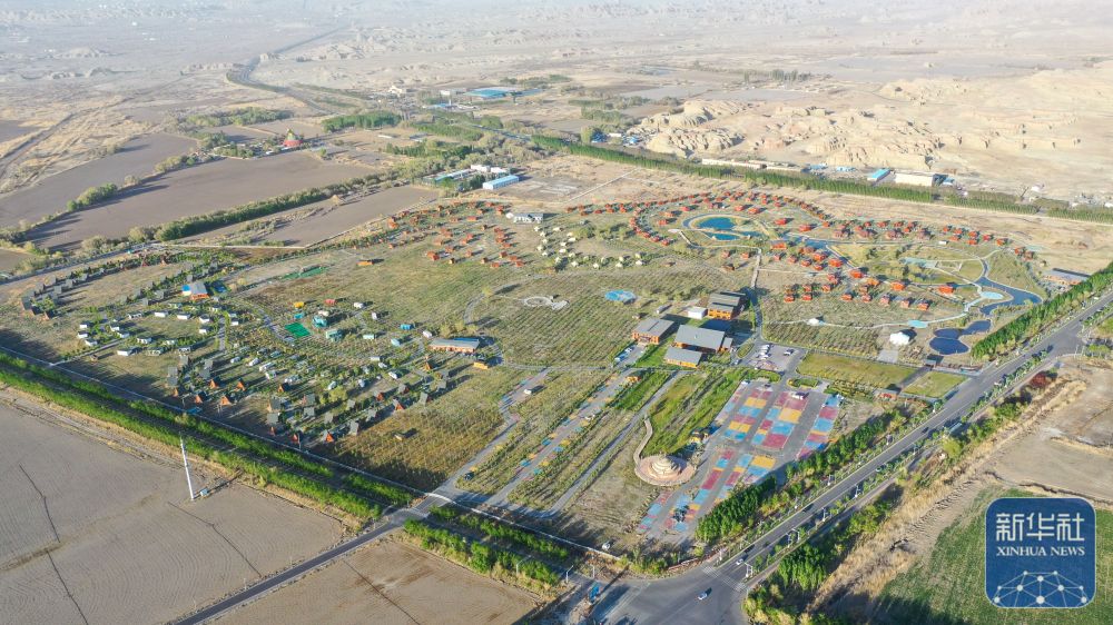 這是在新疆克拉瑪依市烏爾禾區(qū)拍攝的烏爾禾國際房車露營公園(5月2日攝,無人機照片)。