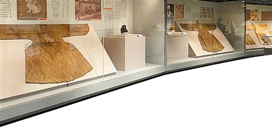 除了依據(jù)文物殘留部分的形態(tài),同時(shí)期相關(guān)文獻(xiàn)的記載也成為確定墓主人袍子側(cè)擺結(jié)構(gòu)的一大依據(jù)?!罢禽^真于厚度、顏色,用的染料、金屬線(xiàn)、紗線(xiàn),以及織物的形制尺寸等紡織品文物的一眾細(xì)節(jié),我們才最終復(fù)原出文物的真實(shí)面貌。”王淑娟說(shuō)。