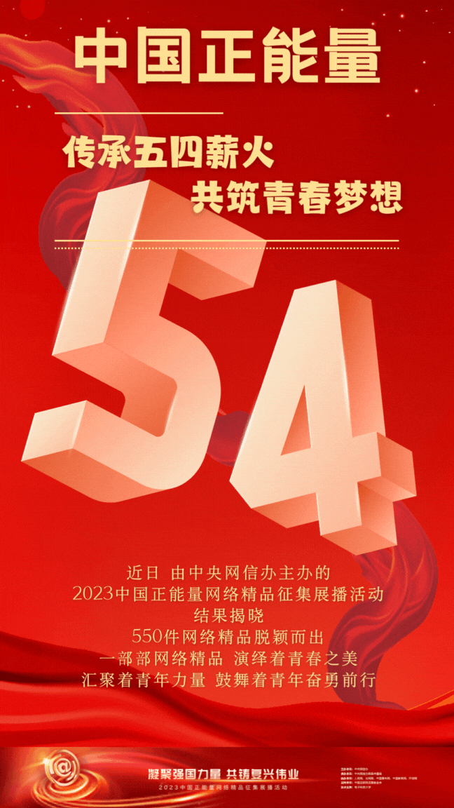 近日,由中央網(wǎng)信辦主辦的2023中國正能量網(wǎng)絡(luò)精品征集展播活動結(jié)果揭曉,550件網(wǎng)絡(luò)精品脫穎而出。一部部網(wǎng)絡(luò)精品,演繹著青春之美,匯聚著青年力量,鼓舞著青年奮勇前行。