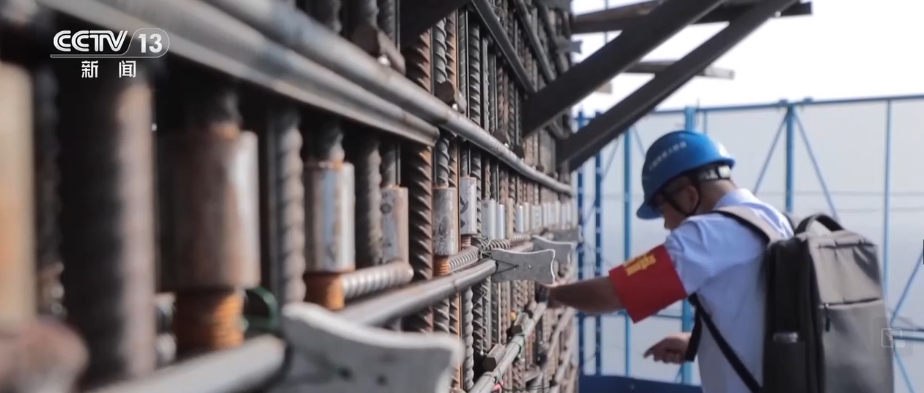 黃沖是這支年輕團隊的主力隊員?,F(xiàn)場,他正在檢查墊塊綁扎和鋼筋焊接情況,一旦出現(xiàn)墊塊下垂或者偏位,就會導(dǎo)致后續(xù)鋼筋保護層控制不到位。