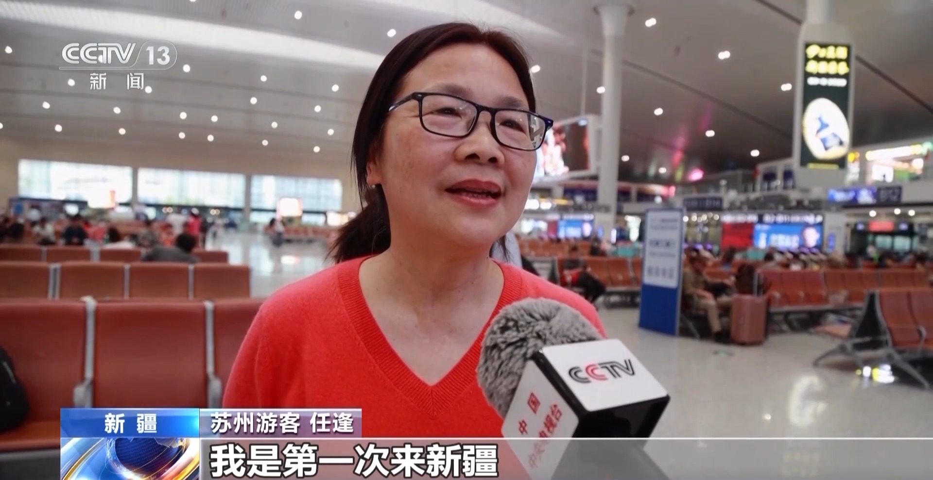 蘇州游客 任逢:我是第一次來新疆,為了這次旅行我們已經(jīng)考慮了兩三年了,“天山號”能夠帶著我玩遍整個南北疆的旅游景點。這個很方便,我很期待這次旅行。