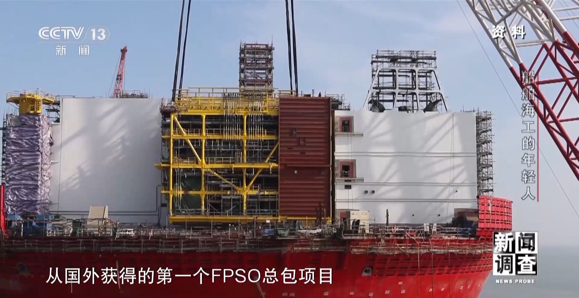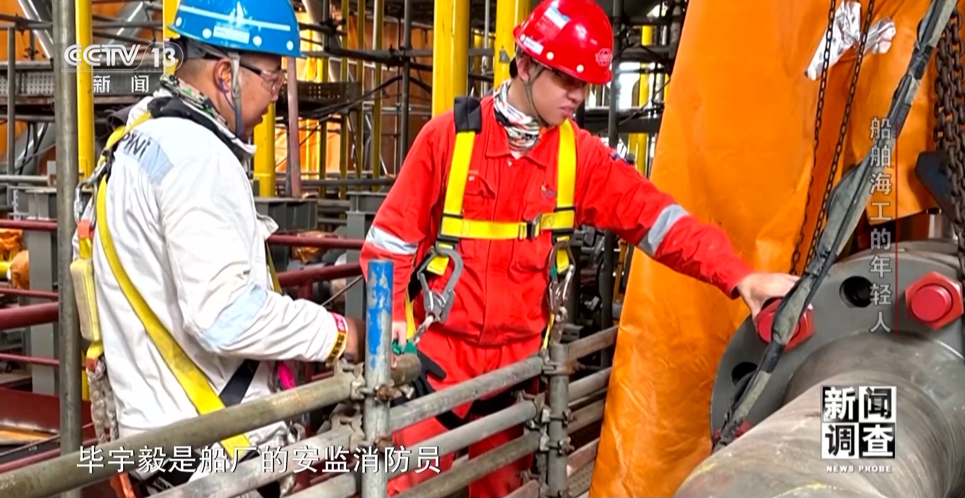 啟東中遠(yuǎn)海運(yùn)海洋工程有限公司安監(jiān)消防員 畢宇毅:那個(gè)船非常漂亮,也是我進(jìn)入這個(gè)行業(yè)第一個(gè)學(xué)習(xí)的項(xiàng)目,在一個(gè)300多米的船上,每天能走兩萬步。等到項(xiàng)目交付的那一刻,等這個(gè)船嶄新擺在碼頭的時(shí)候,大家都感覺非常自豪。那一刻你也不知道看的是什么,可能看的就是過去兩年半的青春奉獻(xiàn)在了這個(gè)大國重器上面。
