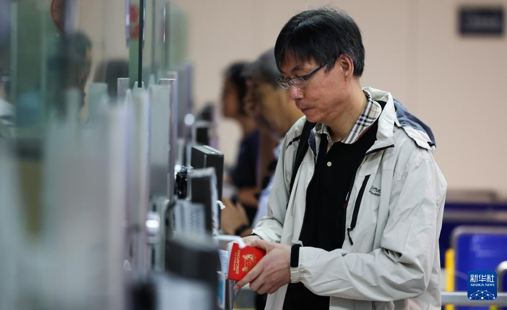 5月9日,入境旅客在??诿捞m邊檢站辦理邊檢手續(xù)后通關(guān)。當(dāng)日,記者從??诔鋈刖尺叿罊z查總站了解到,擴(kuò)大59國人員免簽入境海南事由政策自今年2月9日正式實(shí)施以來,入境海南的免簽外籍旅客已超7.5萬人次,外籍游客赴瓊熱情被進(jìn)一步激發(fā)。新華社記者 楊冠宇 攝