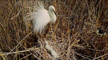 蘆葦叢中,五千多只白鷺幼鳥(niǎo)破殼而出,蹣跚學(xué)步、眺望遠(yuǎn)方,灰白相間的蒼鷺幼鳥(niǎo)在成鳥(niǎo)的羽翼下休憩。