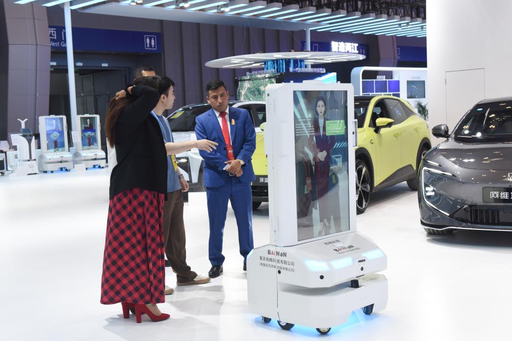 5月23日,工作人員在西洽會(huì)上給觀眾介紹講解機(jī)器人。新華社記者 張子彧 攝