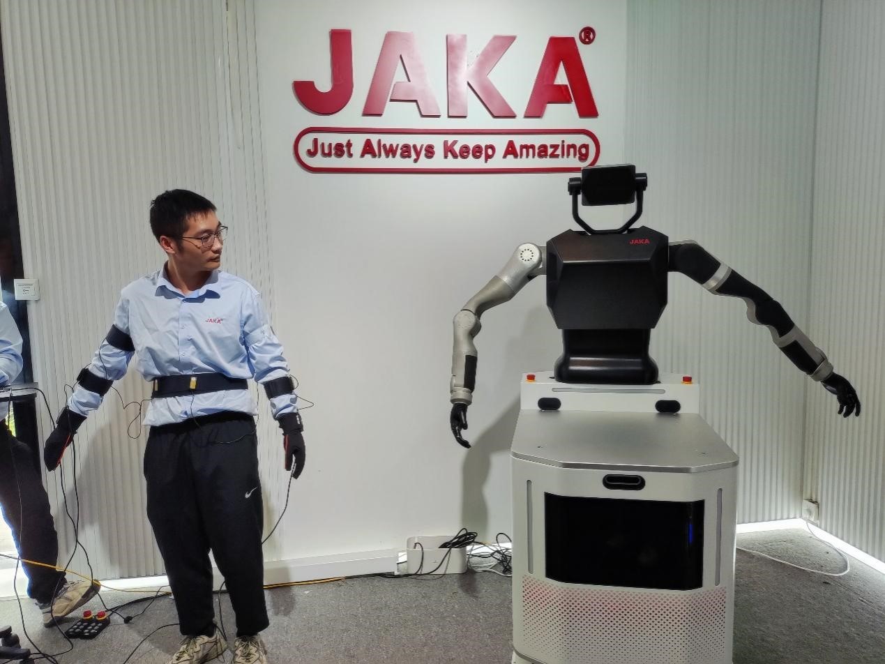 節(jié)卡機器人公司工作人員展示用動作控制機器人。黃曉慧攝