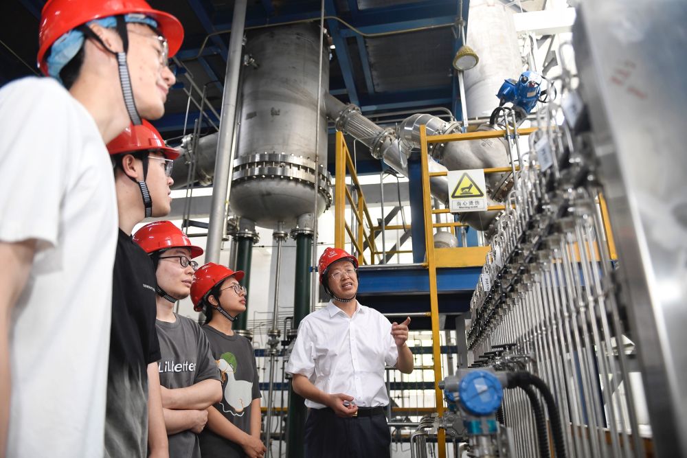 5月24日,在位于成都的中國核動(dòng)力研究設(shè)計(jì)院內(nèi),鐘元章(右一)與團(tuán)隊(duì)年輕人在試驗(yàn)臺(tái)架上交流。