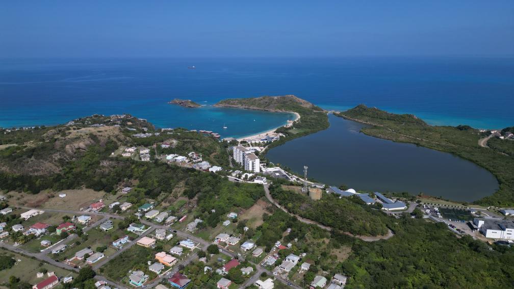 這是2月1日用無人機拍攝的安提瓜和巴布達(dá)首都圣約翰海岸線一景。新華社發(fā)(里卡多·蒙托亞攝)