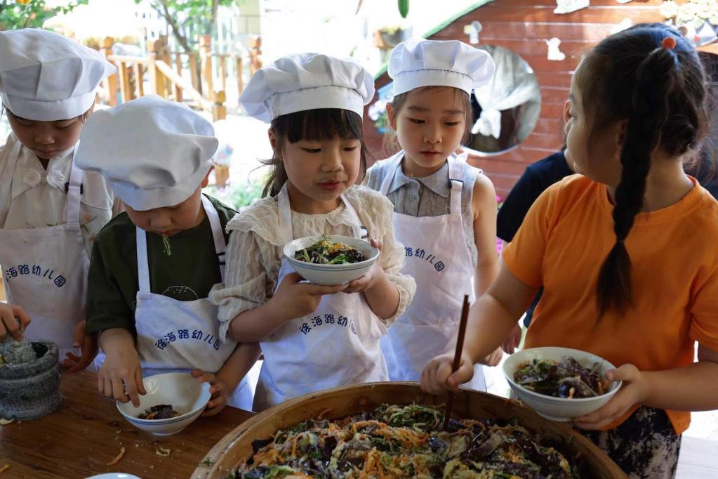 如果不是親眼所見(jiàn),很難想象,這些“廚房重地”的活兒,會(huì)出現(xiàn)在一家幼兒園,“大廚”竟是一群幼兒園小朋友。