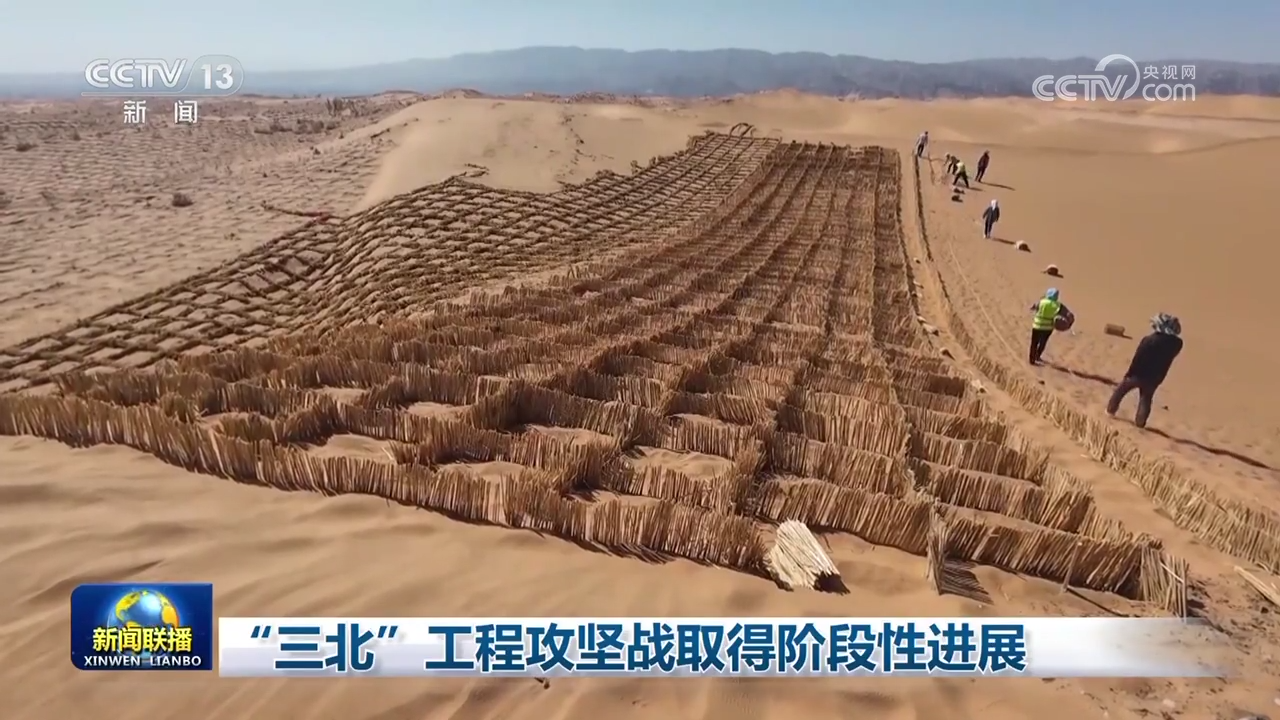 這幾天,趕在雨季到來前,“三北”工程攻堅戰(zhàn)項目區(qū)各地因地制宜,植樹種草,防沙治沙。地處騰格里沙漠東南緣的寧夏中衛(wèi),今年將完成荒漠化治理59.23萬畝,當(dāng)?shù)卣谝悦刻?00到1000畝的速度栽扎沙障,漫漫黃沙被分割鎖定在了數(shù)以萬計的方格中。