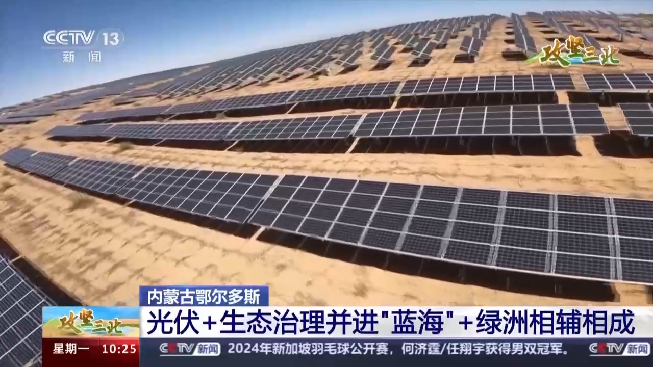 總臺記者 李欣蔓:此時此刻,我就在庫布其沙漠的西側腹地。拿我現(xiàn)在所在的杭錦旗朔方新能源大基地來說,這里正在探索建設的就是當下最新的光伏治沙模式。說到光伏發(fā)電,我們已經(jīng)很熟悉了,那光伏治沙怎么治?今天我們就在現(xiàn)場找一下答案。