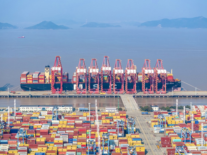 寧波舟山港在推動(dòng)長(zhǎng)三角一體化發(fā)展中發(fā)揮重要作用。浙江海港供圖
