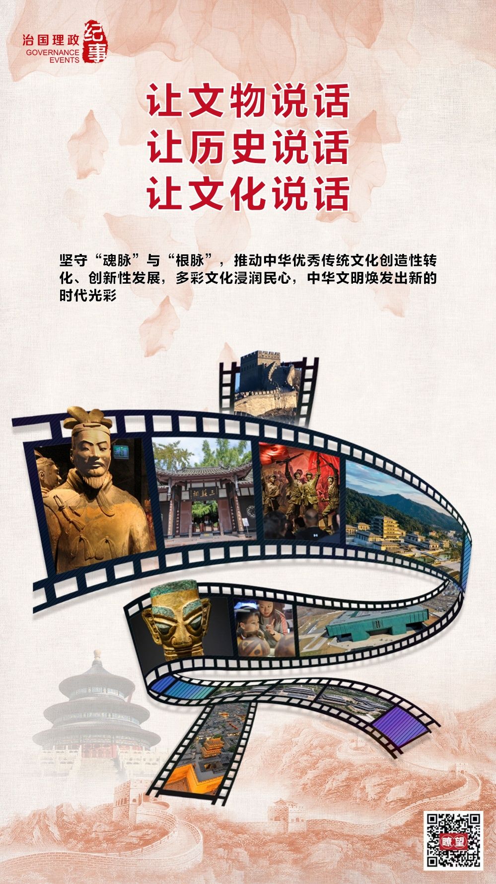 從《關(guān)于實(shí)施中華優(yōu)秀傳統(tǒng)文化傳承發(fā)展工程的意見(jiàn)》首次以中央文件形式推動(dòng)延續(xù)中華文脈、傳承中華文化基因,到全國(guó)文物工作會(huì)議確立“保護(hù)第一、加強(qiáng)管理、挖掘價(jià)值、有效利用、讓文物活起來(lái)”的新時(shí)代文物工作方針;從中華文明探源工程、“考古中國(guó)”重大項(xiàng)目持續(xù)推進(jìn),水下考古和水下文化遺產(chǎn)保護(hù)取得突破,到革命文物保護(hù)利用開創(chuàng)新局面,成為傳承紅色基因、助力鄉(xiāng)村振興、促進(jìn)老區(qū)發(fā)展的活力源泉;從文博場(chǎng)館里感受五千多年?duì)N爛的中華文明,到考古盲盒、文藤種子等文博創(chuàng)意產(chǎn)品“飛入尋常百姓家”……我國(guó)文物保護(hù)利用和文化遺產(chǎn)保護(hù)傳承的實(shí)踐別開生面,為實(shí)現(xiàn)中華民族偉大復(fù)興的中國(guó)夢(mèng)凝聚起強(qiáng)大精神力量。