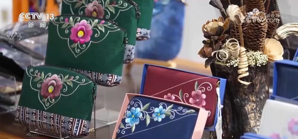 這樣精美的非遺手工藝品,不僅在博物館里能見到,我們日常生活也能用得上。您現(xiàn)在看到的,就是在楚雄特產店里銷售的成衣、絲巾、背包。這些都是純手工繡出來的。銷售非?;鸨?。)