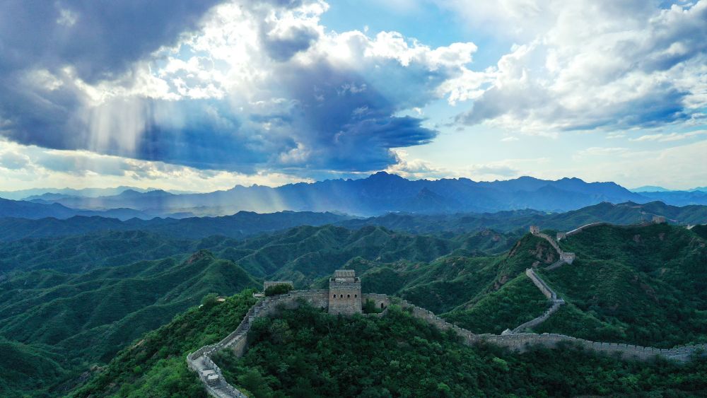 金山嶺長(zhǎng)城風(fēng)光(2023年8月31日攝,無(wú)人機(jī)照片)。新華社記者 牟宇 攝