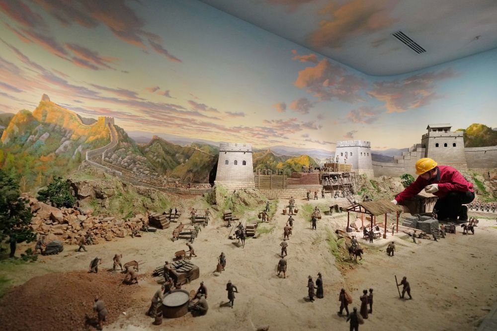 工人在山海關(guān)中國(guó)長(zhǎng)城博物館展廳布展(2024年4月11日攝)。新華社記者 楊世堯 攝