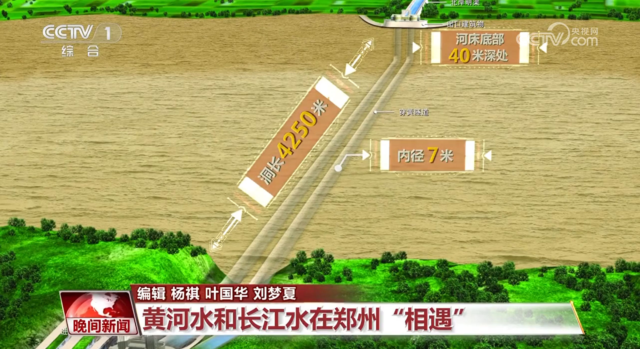 來(lái)自丹江口水庫(kù)的長(zhǎng)江水自渠首出,一路自流向北,黃河成為阻礙南水北去的天然屏障。為了解決這個(gè)問(wèn)題,“穿黃工程”由此誕生?!按S”顧名思義就是“穿越黃河”,黃河河床下復(fù)雜的地質(zhì)條件,注定了穿黃隧道不同于一般的交通隧道,也造就了隧道非同尋常的構(gòu)造。南水北調(diào)工程建設(shè)者在鄭州花園口西黃河河床底部40米深處開(kāi)鑿兩條隧道,穿黃隧道為雙線(xiàn)有壓輸水隧道,單個(gè)洞長(zhǎng)4250米,內(nèi)徑7米,這樣的內(nèi)徑可以滿(mǎn)足洞內(nèi)跑汽車(chē)。有了“穿黃工程”,北上的長(zhǎng)江水通過(guò)兩條穿黃隧道與黃河立體交叉相遇,平時(shí),黃河水在上面流,南水北調(diào)的長(zhǎng)江水在河底隧道中流過(guò),兩者上下而過(guò),猶如一條巨龍?jiān)邳S河之下隱去了身影。