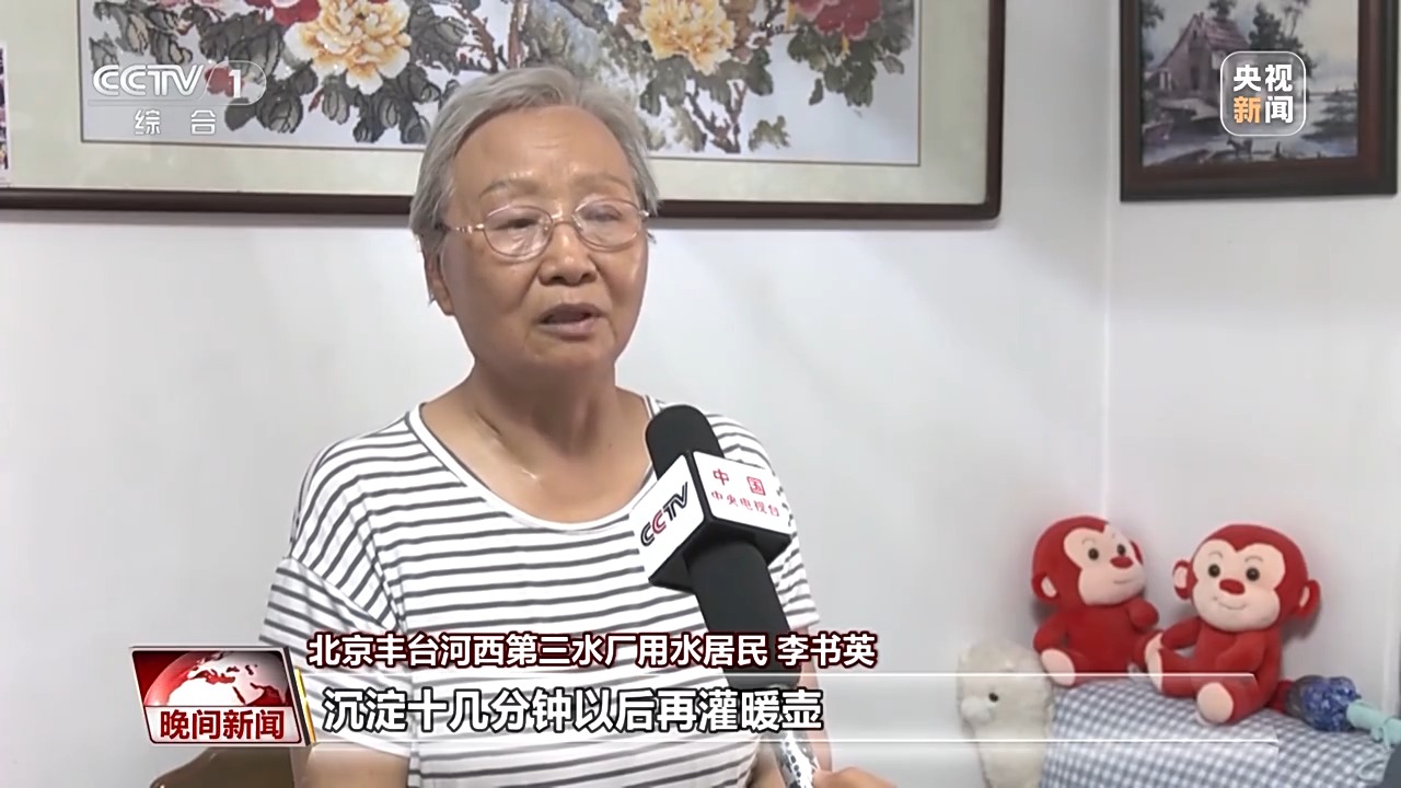 北京豐臺河西第三水廠用水居民 李書英:我們原來用水壺燒開水以后,還得沉淀,沉淀十幾分鐘以后再灌暖壺,但是暖壺里水堿也特別多?,F(xiàn)在通過南水北調水質比之前好多了,水堿比原來大大減少。