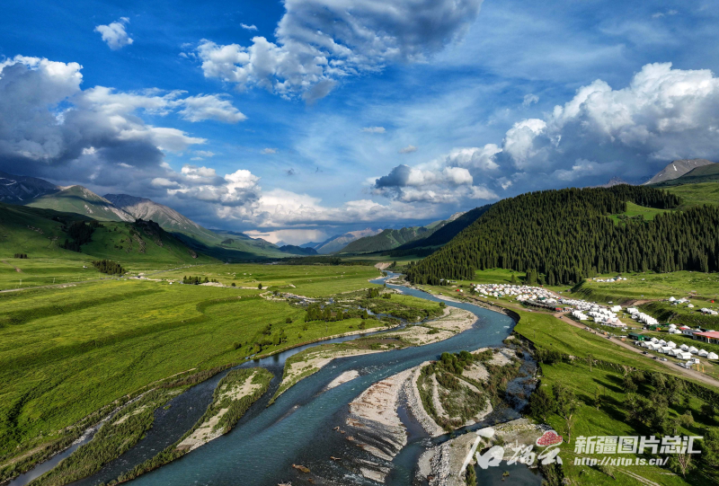 6月17日,藍(lán)天白云下的尼勒克縣唐布拉草原。張慶華攝