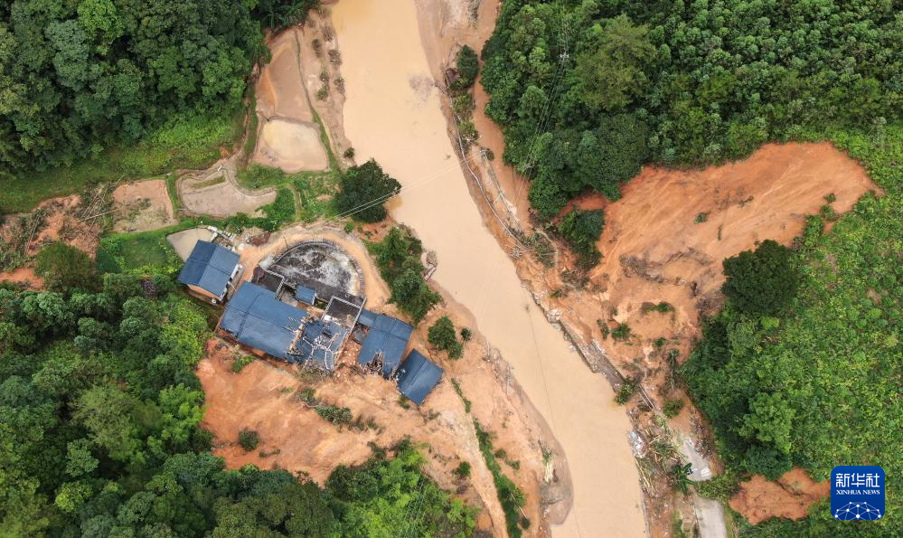 災(zāi)后的廣東省梅州市平遠(yuǎn)縣泗水鎮(zhèn)大新村(6月19日攝,無(wú)人機(jī)照片)。新華社記者 盧漢欣 攝
