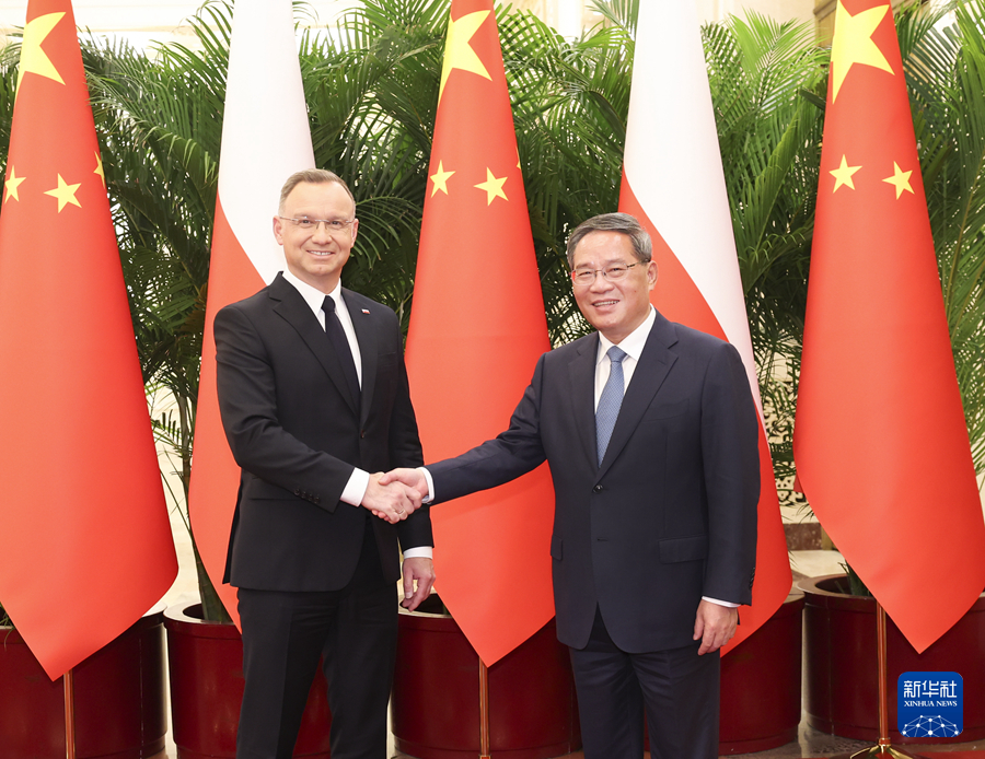 6月24日上午,國務(wù)院總理李強在北京人民大會堂會見來華進(jìn)行國事訪問的波蘭總統(tǒng)杜達(dá)。新華社記者 龐興雷 攝