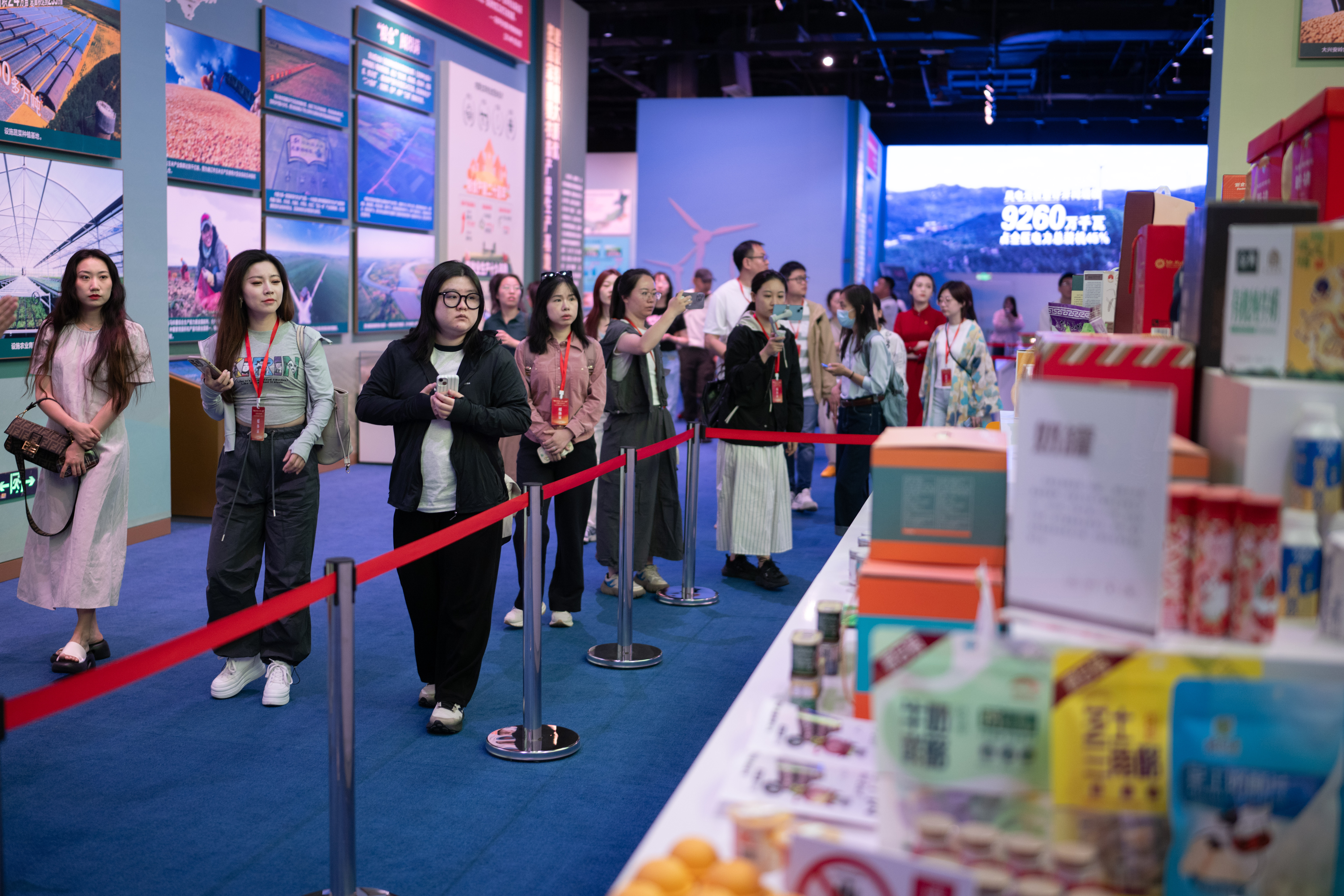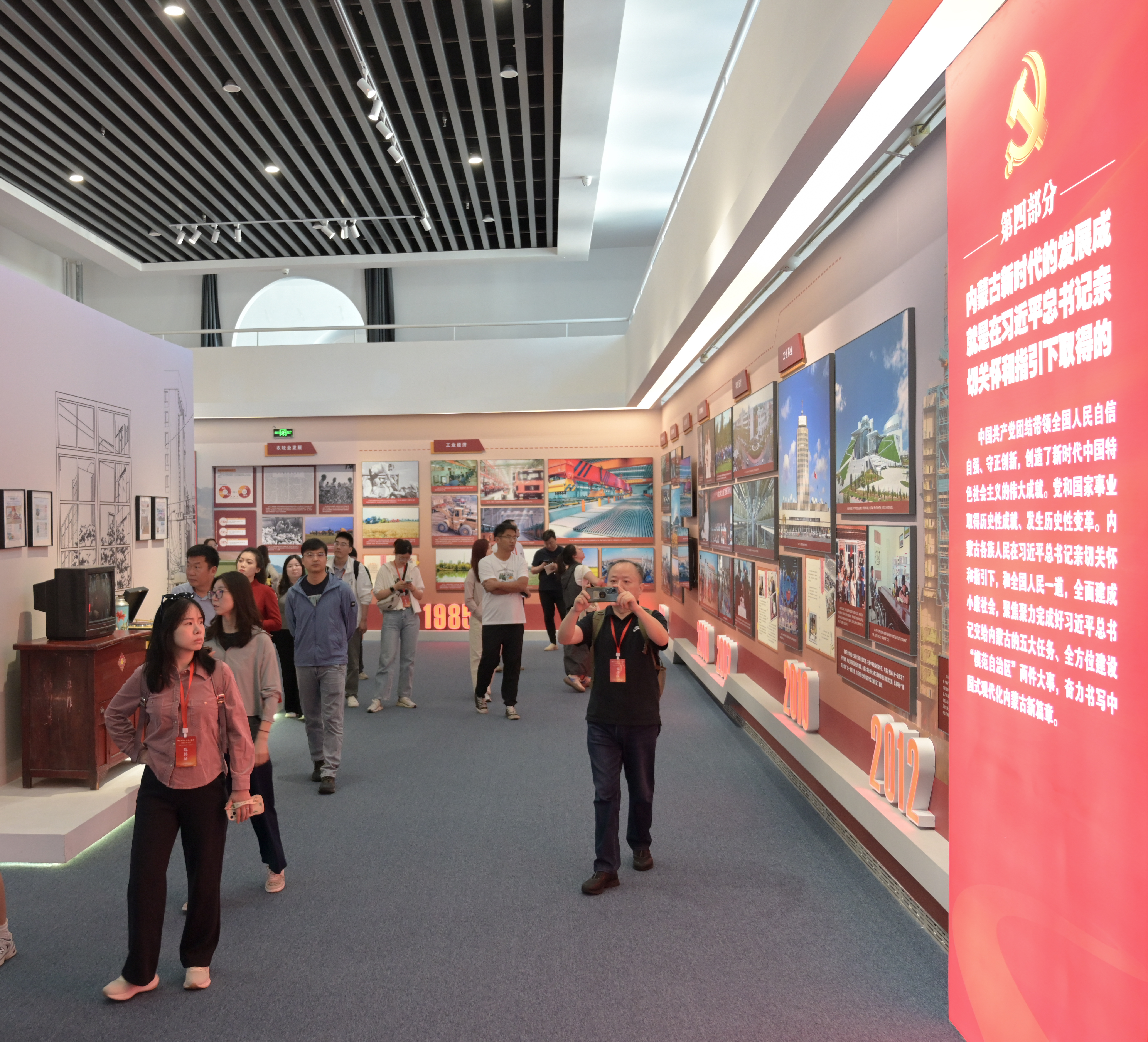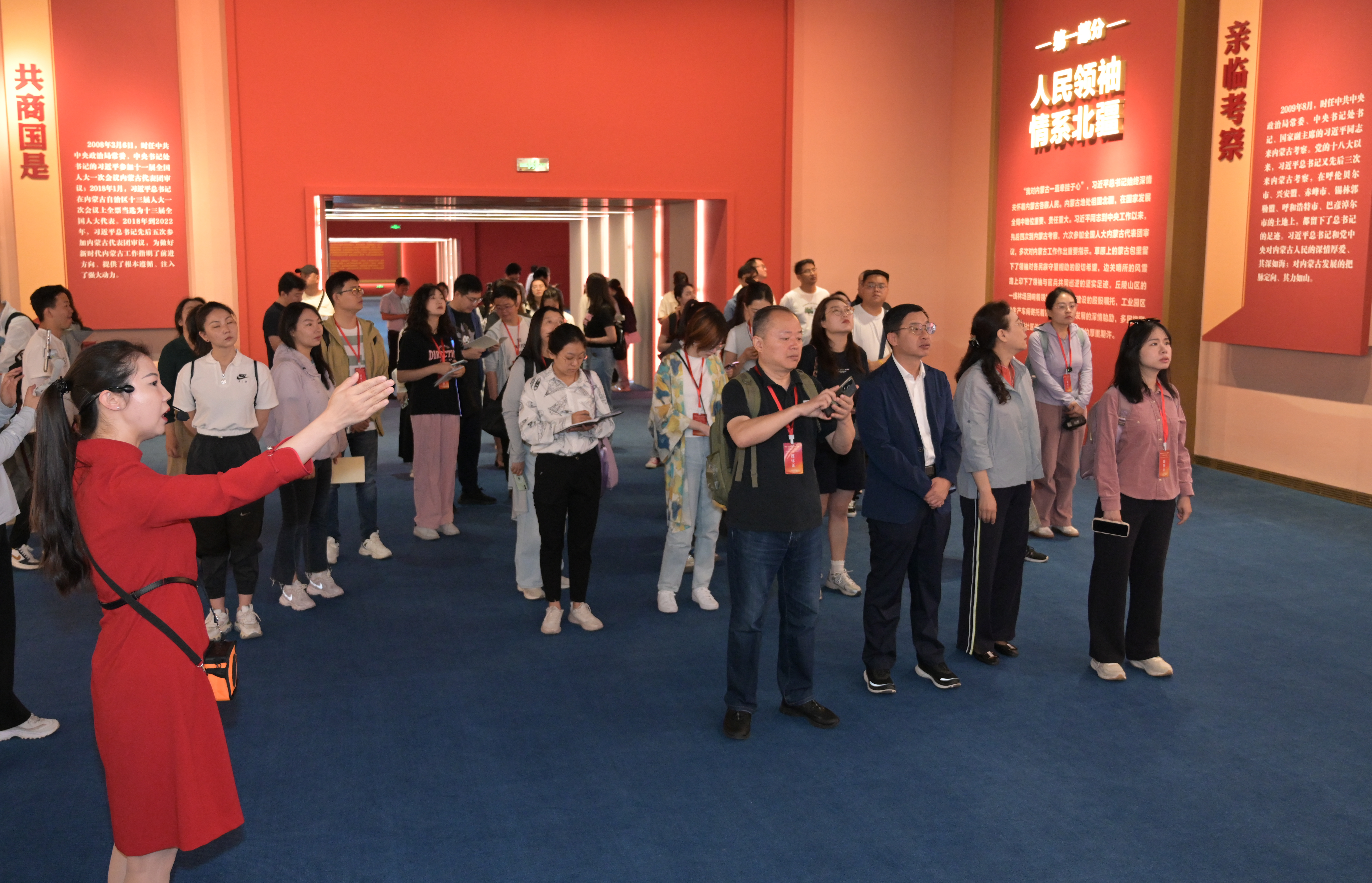 采訪團(tuán)參觀“牢記囑托 感恩奮進(jìn)”主題展。