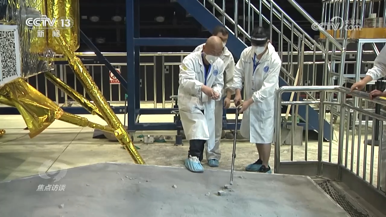 中國航天科技集團史偉:“落了月以后,首先相機要對整個采樣區(qū)進行成像。采樣區(qū)大致的起伏程度也好,有沒有石頭也好,避開風(fēng)險區(qū)域,所以我們首先要在內(nèi)場把整個月面的環(huán)境真實地還原回來。”