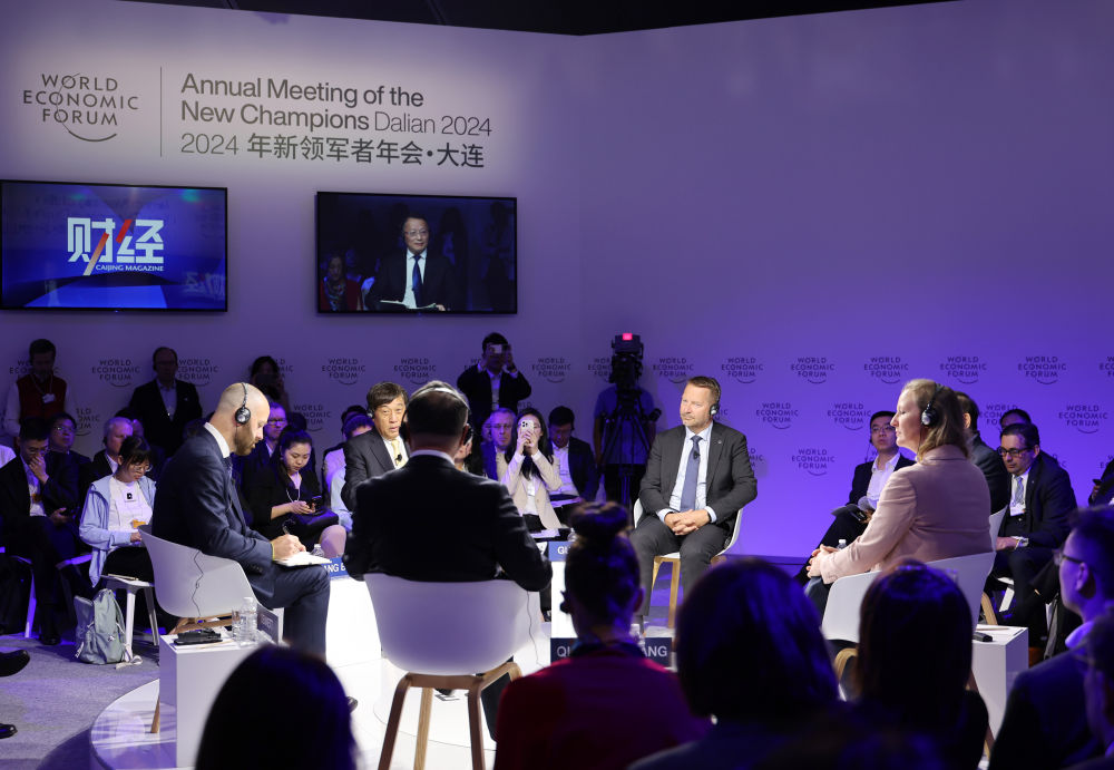 6月26日,在夏季達(dá)沃斯論壇主會(huì)場(chǎng)大連國(guó)際會(huì)議中心,嘉賓參與互動(dòng)討論。新華社記者李鋼攝