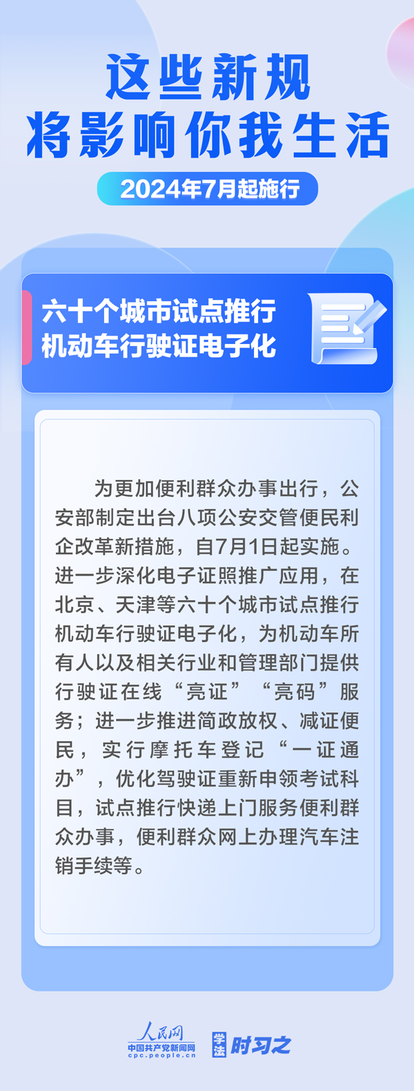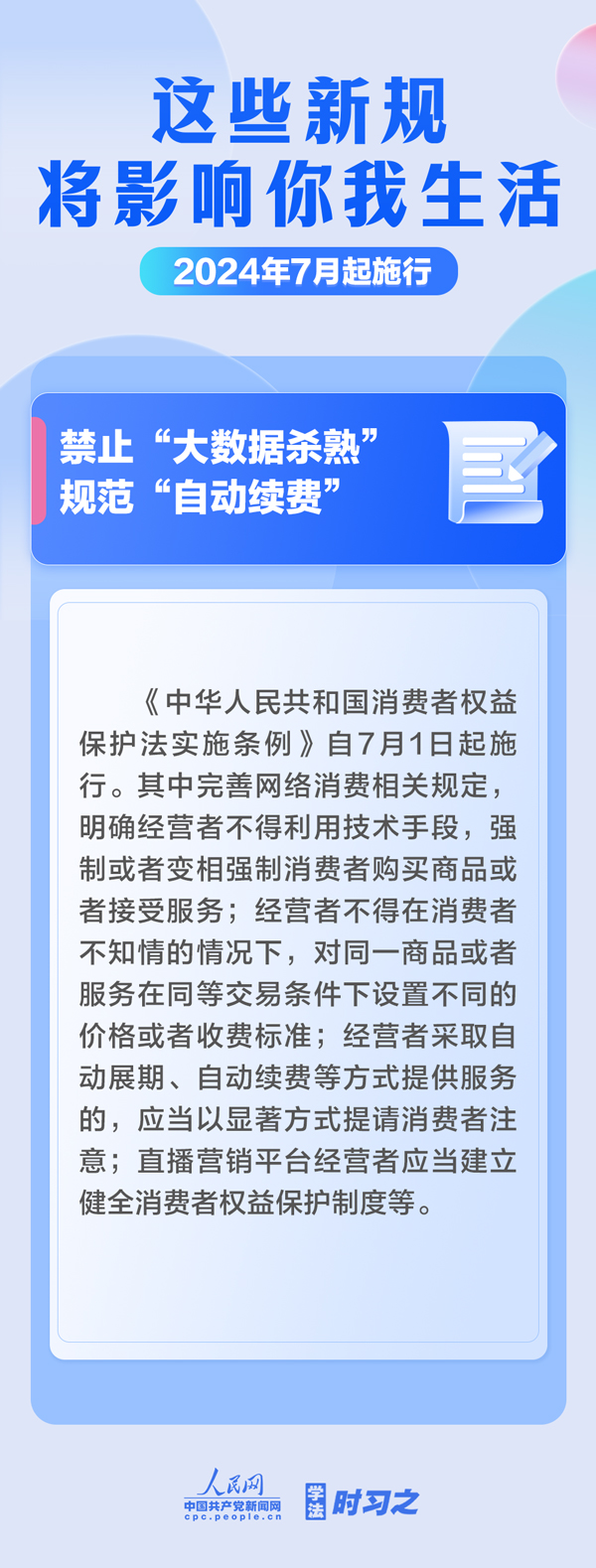 完善注冊資本認繳登記制度;禁止“大數據殺熟”規(guī)范“自動續(xù)費”;在六十個城市試點推行機動車行駛證電子化……7月起,這些新規(guī)施行,將影響你我生活。