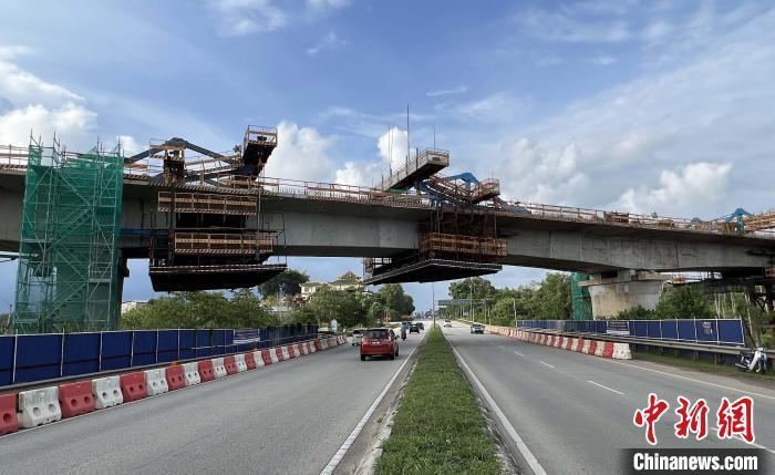 資料圖:馬東鐵關丹河特大橋成功“合龍”。 關丹河特大橋橫跨彭亨州C4公路,于2022年10月6日完成增添最后一個合龍段?!●R東鐵 攝