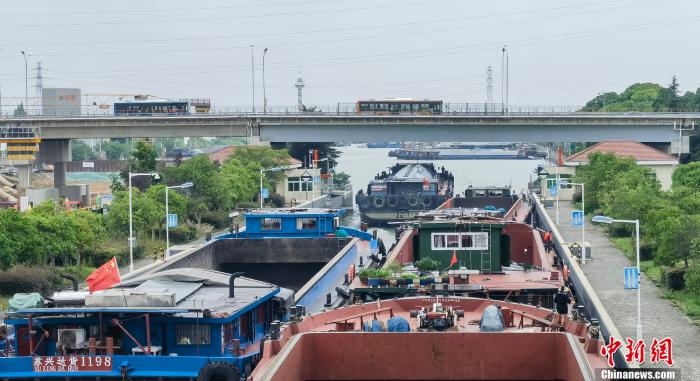 張濤介紹,之前蘇南蘇北運(yùn)河標(biāo)準(zhǔn)不一,過大船只無法駛?cè)胩K南段運(yùn)河,需在長江過駁,把大船上的貨物通過小船分運(yùn)。改造完成之后,南北可以統(tǒng)一通航,既大大提高通航效率,也對(duì)長江的生態(tài)環(huán)境起到重要保護(hù)作用。