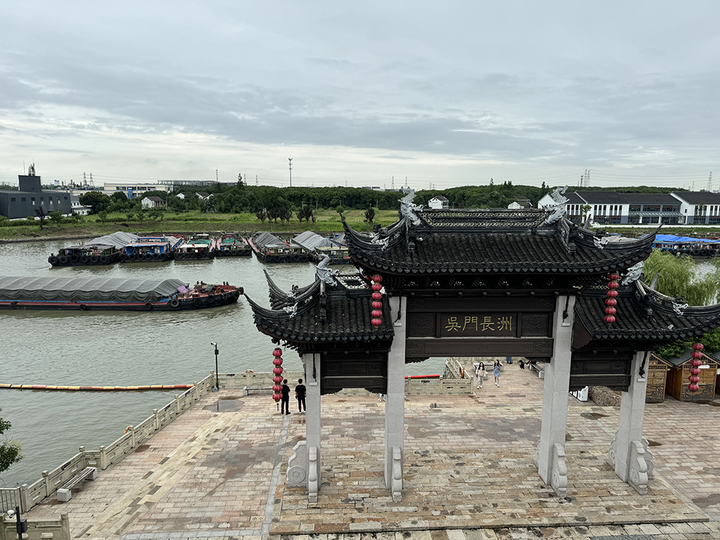 行走在運(yùn)河公園,亭、臺、樓、閣錯(cuò)落有致,碑、牌、匾、聯(lián)引人思緒。登望運(yùn)閣極目遠(yuǎn)眺,河面上舟楫如織。作為大運(yùn)河最繁忙的河段之一,每天,有數(shù)千條貨船從這里穿行,他們在“吳門長洲”的石坊前劃過的一瞬間,仿佛古今同框,一眼千年。