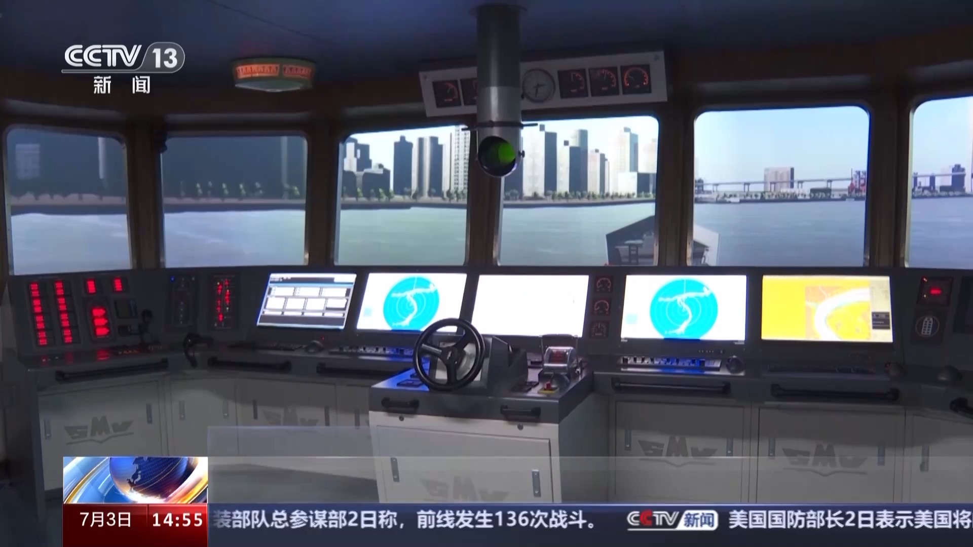 舵輪右手邊的手柄,用來控制主機(jī)轉(zhuǎn)速。操縱臺的左右兩邊,為雷達(dá)監(jiān)測顯示屏幕,代替人眼感知環(huán)境,在霧天航行、夜間航行時(shí)給駕駛員提供便利。它以大型集裝箱船駕駛室為原型,盡可能還原現(xiàn)代化船舶駕駛工作的真實(shí)場景。