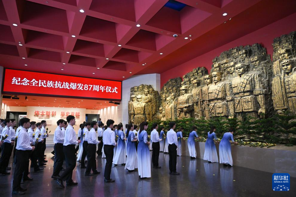 當日,紀念全民族抗戰(zhàn)爆發(fā)87周年儀式在北京中國人民抗日戰(zhàn)爭紀念館舉行。