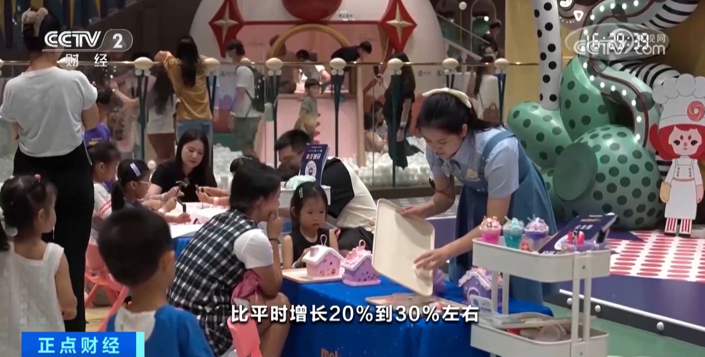 某室內(nèi)游樂(lè)場(chǎng)深圳一方天地店值班經(jīng)理麥麗勤介紹:“比平時(shí)增長(zhǎng)20%至30%左右,因?yàn)楹⒆觽兎偶倭耍议L(zhǎng)們也有空帶孩子們過(guò)來(lái)玩。”