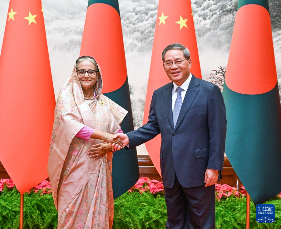 國務(wù)院總理李強7月10日上午在北京人民大會堂同來華進(jìn)行正式訪問的孟加拉國總理哈西娜舉行會談。