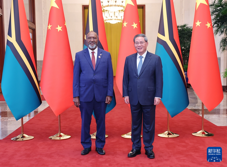 7月12日上午,國務(wù)院總理李強在北京人民大會堂同來華進行正式訪問的瓦努阿圖總理薩爾維舉行會談。新華社記者 姚大偉 攝