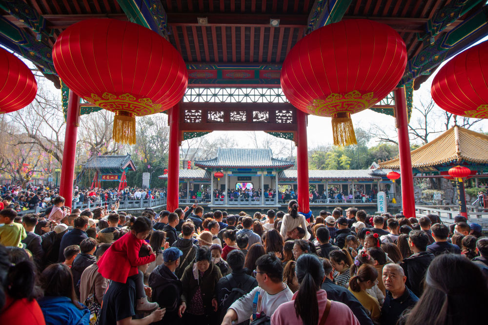 2月14日,游客在山東濟南趵突泉景區(qū)游玩。春節(jié)假期,許多景區(qū)迎來客流高峰,文旅消費市場火爆。 新華社發(fā)(徐舟 攝)
