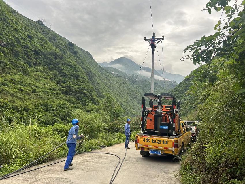 搶修線路。國網(wǎng)雅安電力(集團(tuán))公司供圖