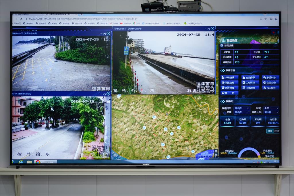25日中午,莆田市秀嶼區(qū)埭頭鎮(zhèn)石城村數(shù)字平臺(tái)顯示的實(shí)時(shí)視頻信息。肖和勇 攝