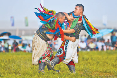 “搏克”即蒙古式摔跤,根據(jù)參賽選手?jǐn)?shù)量分為1024名搏克、512名搏克等比賽,2006年被列入第一批國家級(jí)非物質(zhì)文化遺產(chǎn)名錄。本屆搏克比賽歷時(shí)3天,賽場上,選手們身穿象征公平的開胸摔跤衣,通過摔、抱、拉、拽等技法,力圖將對手摔倒在地。