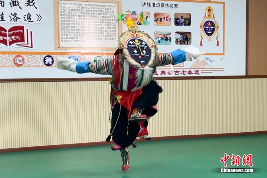 “我在短視頻平臺上看到藏戲老師們跳藏戲的視頻,覺得特別帥,所以我告訴爸爸媽媽‘我想學(xué)藏戲’。”今年11歲的藏族小朋友洛桑是洛桑扎西的覺木隆藏戲小學(xué)員之一,曾憑借出色的藏戲表演榮獲中國少兒戲曲“小梅花”稱號。他的夢想是未來出演一次藏戲中的“王子”角色。