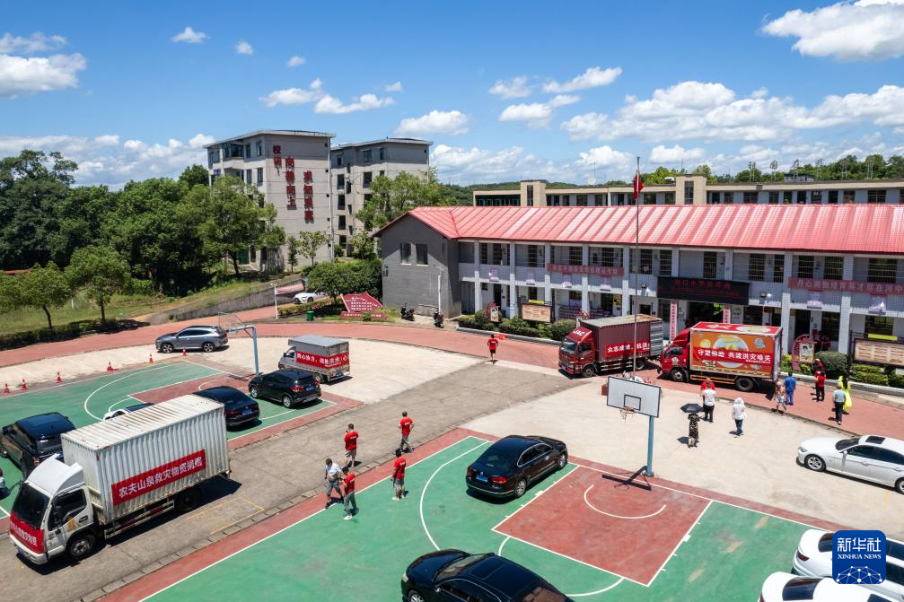 這是7月30日在湖南省湘潭縣拍攝的河口中學(xué)安置點(diǎn)(無人機(jī)照片)。新華社記者 陳思汗 攝