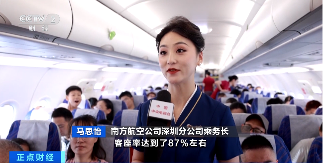 南方航空公司深圳分公司乘務長 馬思怡:今天深圳-銀川-阿勒泰航線的航班客座率達到了87%左右。新開這個航線,為去阿勒泰旅行的旅客提供了便利,也省去了中轉的麻煩。